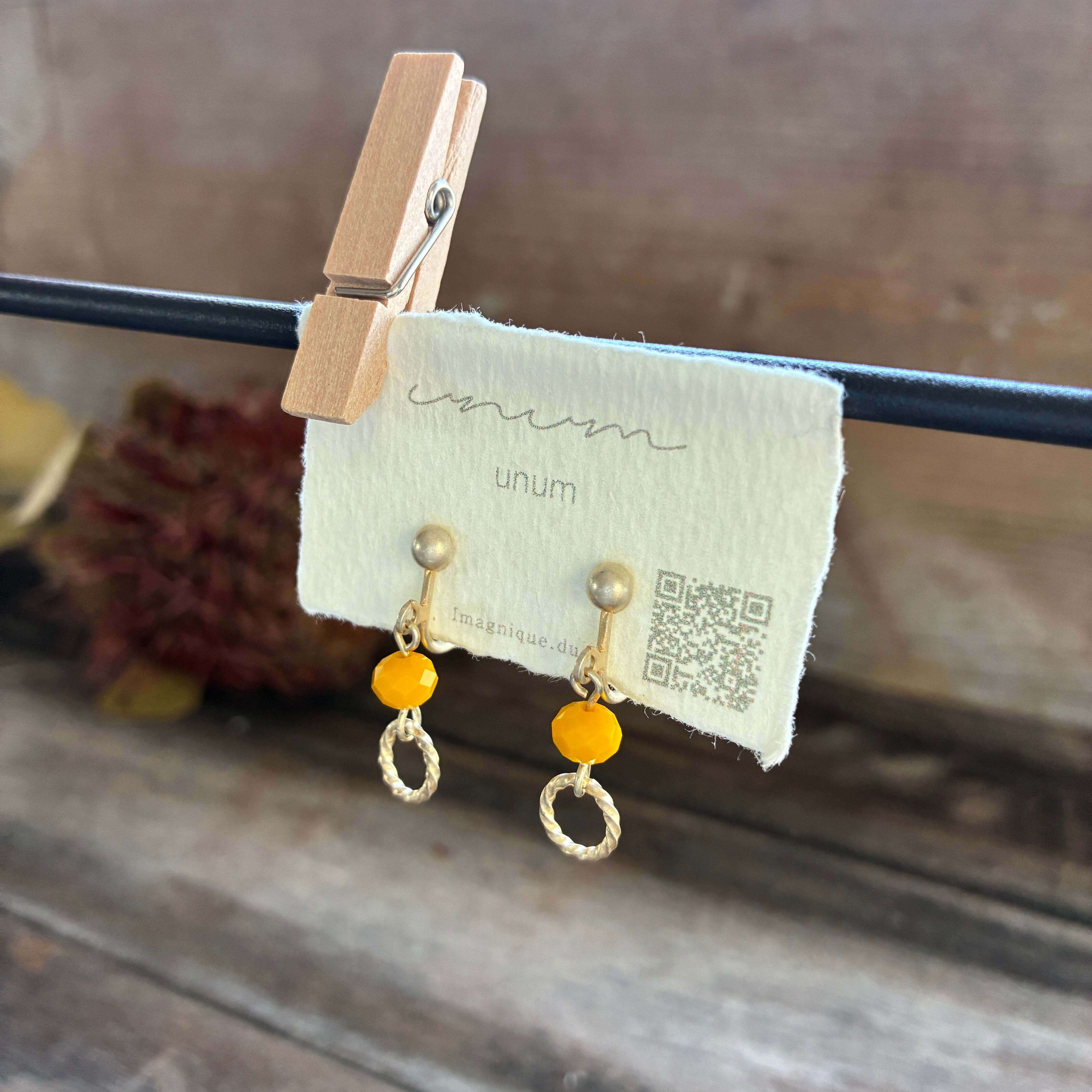 パッと目を引くカラーがコーディネートのアクセントになり、耳元を明るく彩ります。