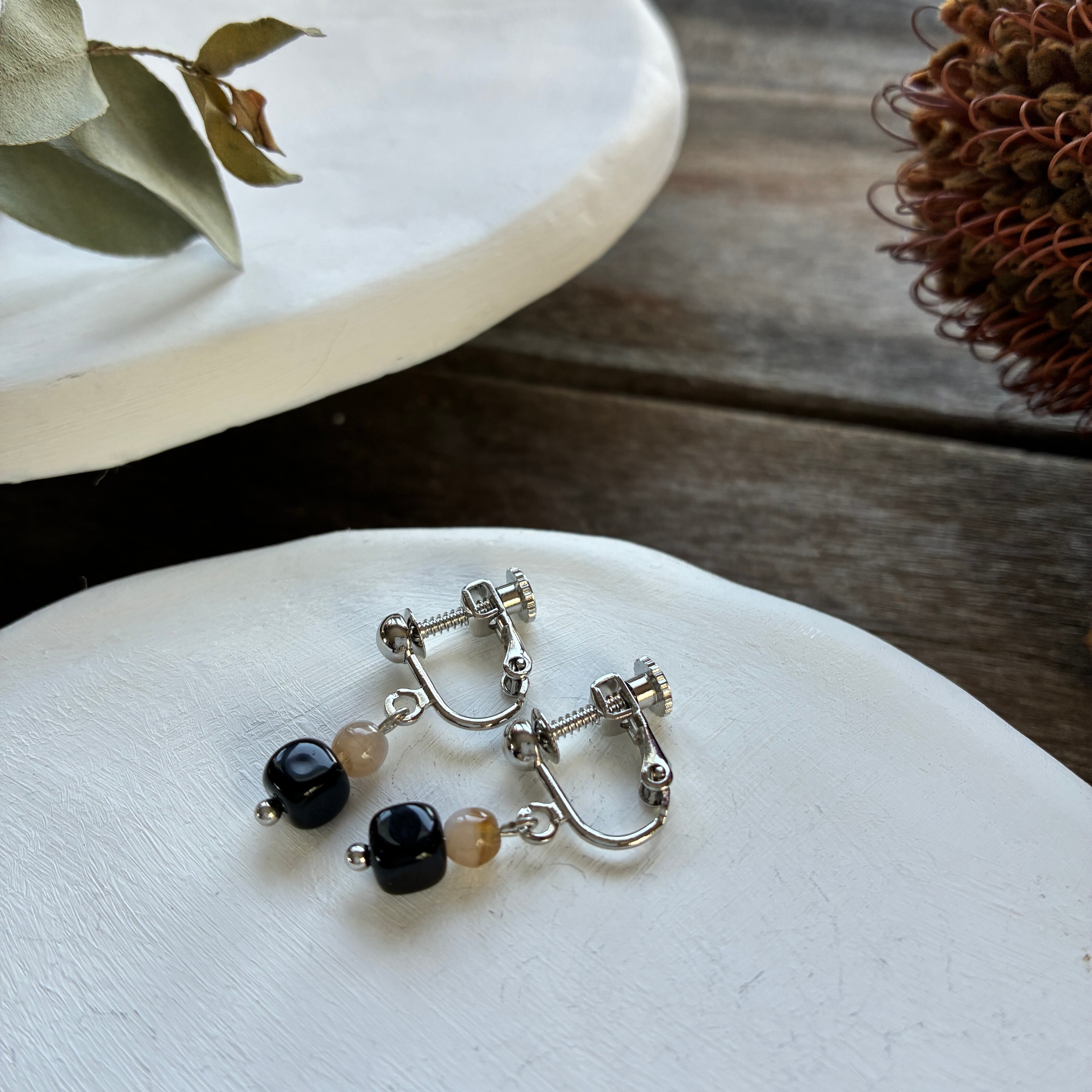 ネジで微調整ができるバネ式のイヤリングです。