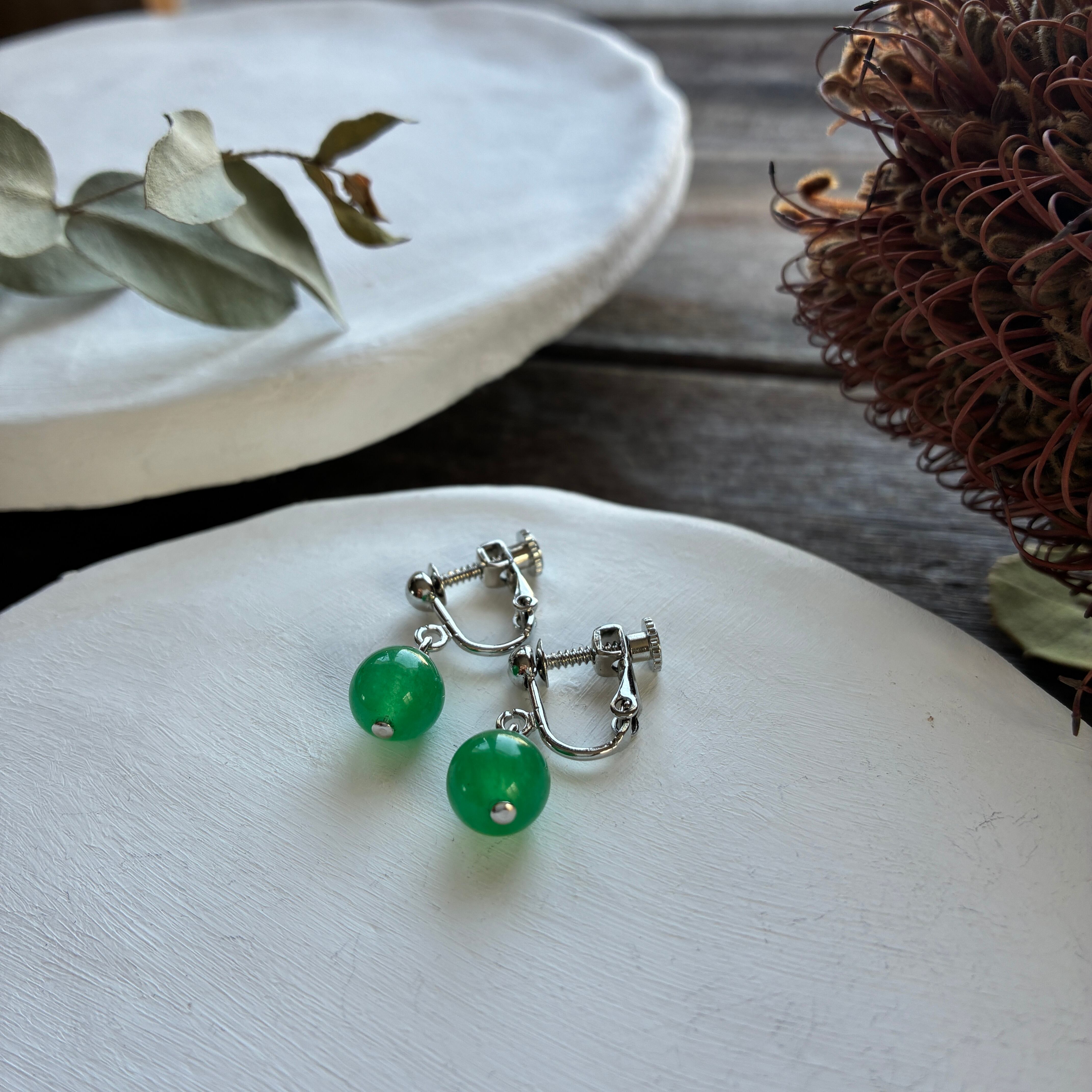 鮮やかなグリーンが目を惹く、天然石「アベンチュリン」のイヤリング。